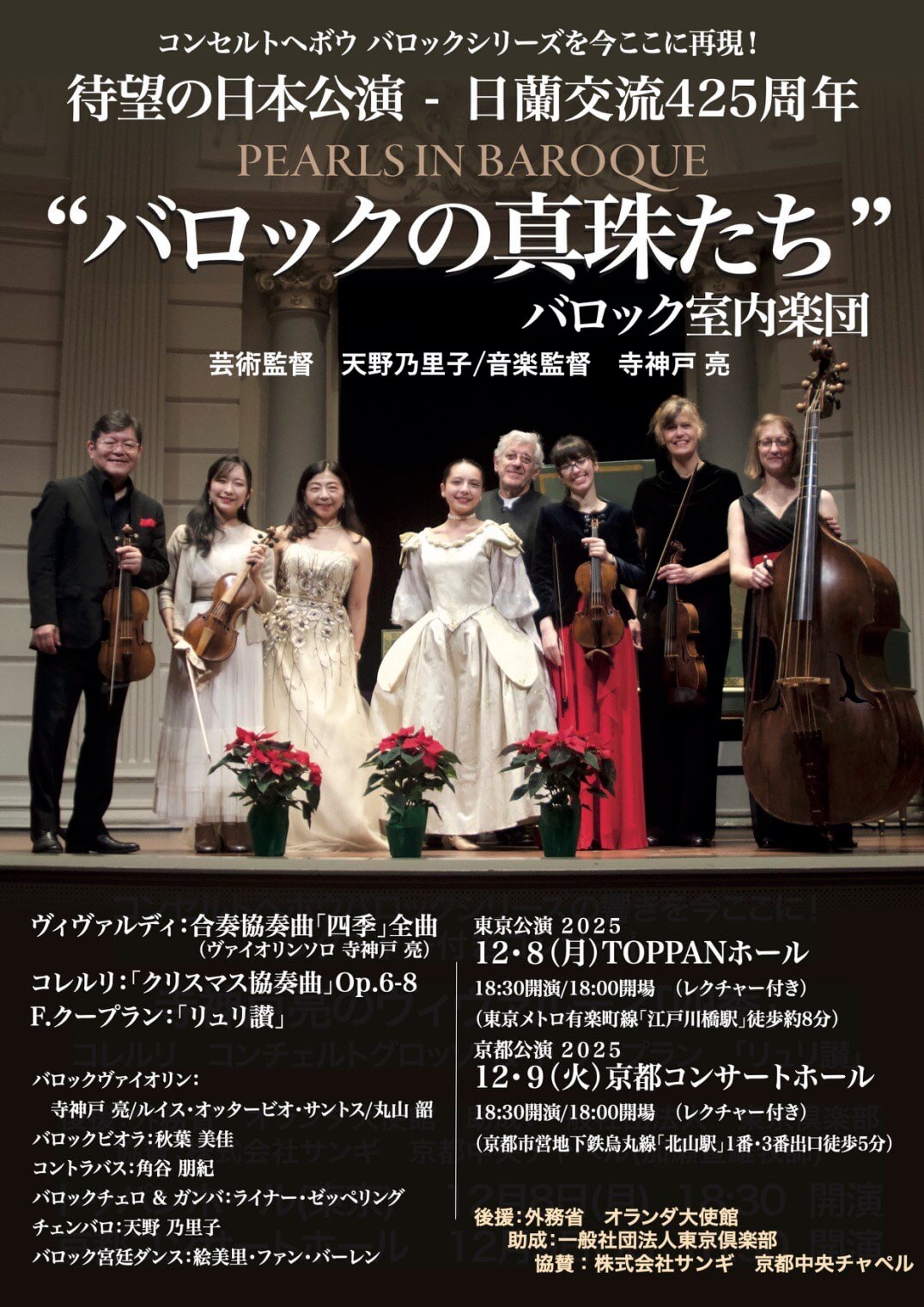 アムステルダムで活動中のバロック室内楽団「Pearls in Baroque」の日本で初演となるコンサート、東京公演は12月8日、京都は12月9日に開催されます。