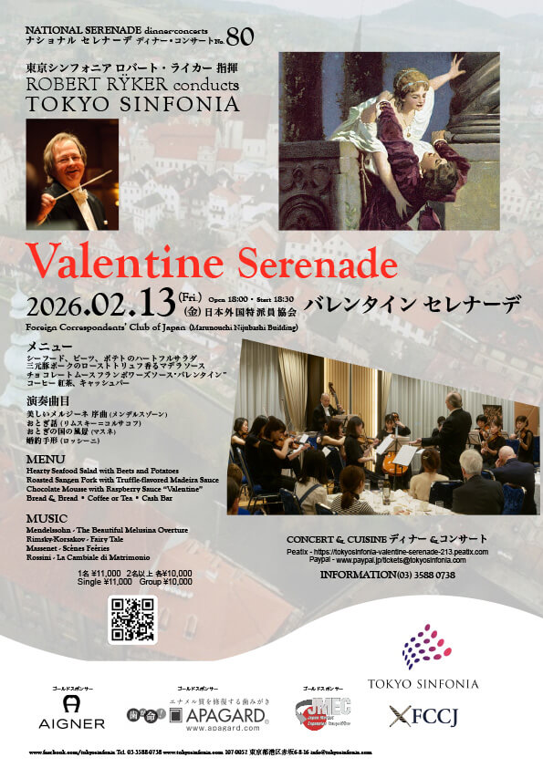 ロバート・ライカーと東京シンフォニアがお届けする、 日本外国特派員協会でのディナーコンサートシリーズ。
