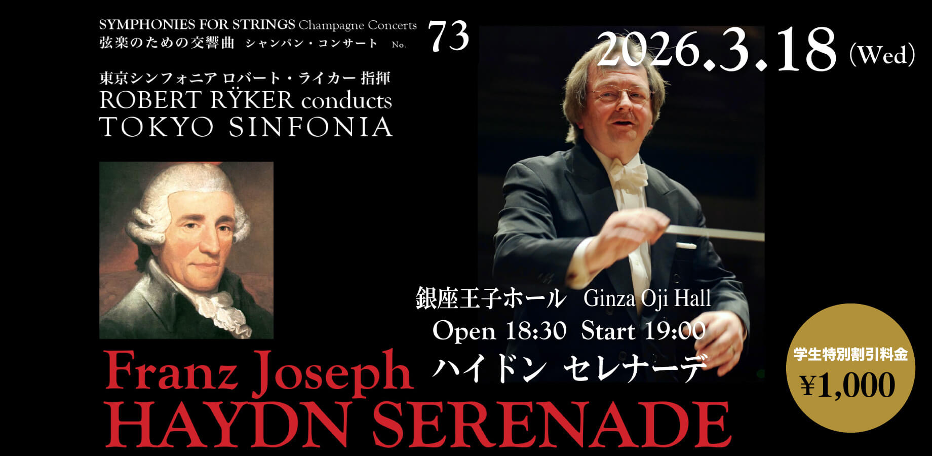 Our conductor wants young people to be able to hear the Tokyo Sinfonia play, and to experience the great music which makes us rich as human beings. For our Oji Hall concerts, we will provide a seat to a student of any age for ¥1,000.